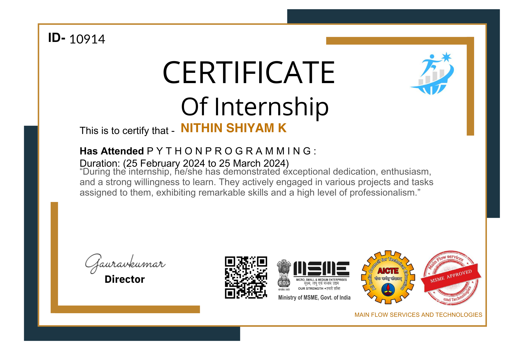 GitHubPython intern, gained hands-on experience and developed Python programming skills.