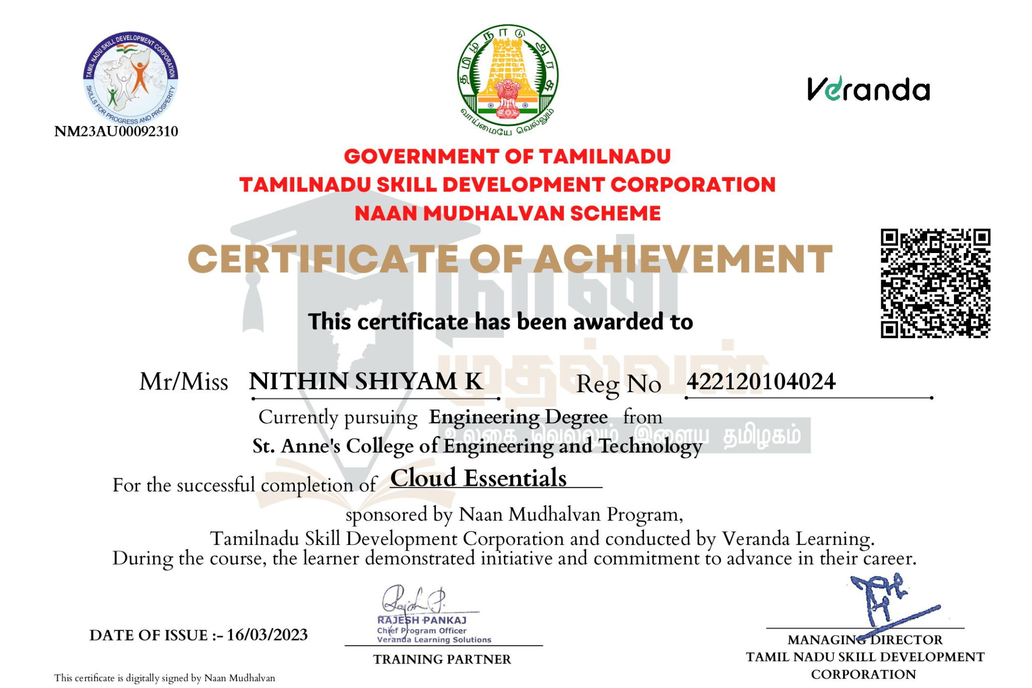 I'm from Chennai. I have completed my B.E degree in Computer Science From St.Anne's CET with 84%. Over the course of my academic journey, I have developed a deep understanding of core programming concepts and have hands-on experience working with a range of technologies, including Java, Oracle SQL, HTML, CSS, and GitHub. I have also built multiple dynamic websites using HTML and CSS, focusing on creating user-friendly and responsive interfaces. I am moderatly skilled in version control using GitHub. I am constantly looking to expand my knowledge and enhance my skills, and I thrive in environments that encourage innovation, problem-solving, and continuous learning and I am eager to contribute to impactful software development projects and make a meaningful difference in the technology space..