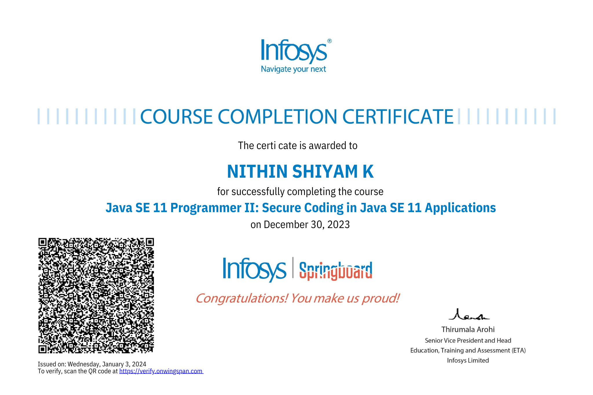 Completed Java SE 11 course, gained advanced skills in Java programming.
