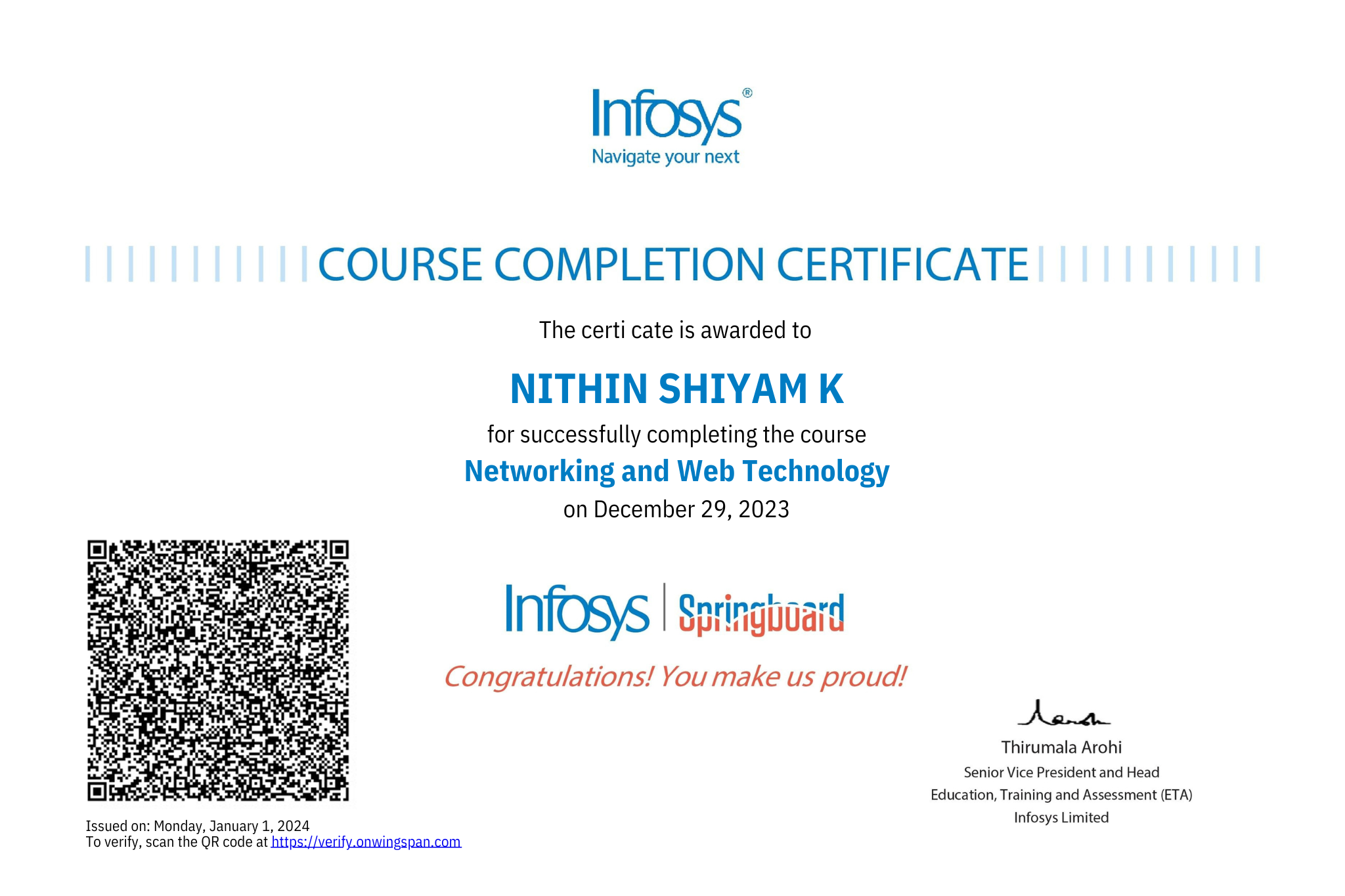 Completed Networking and Web Technology course, gained knowledge in network protocols.