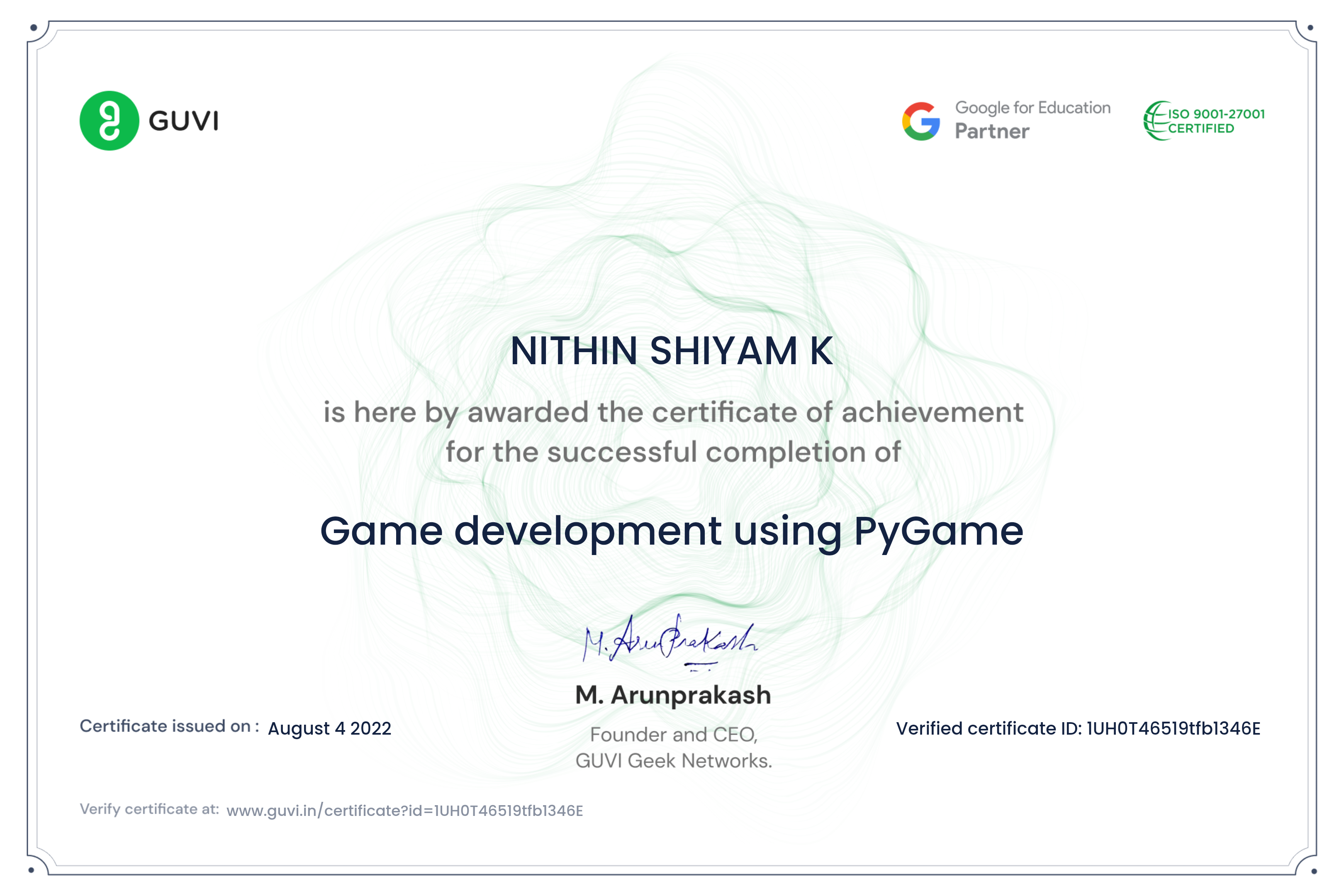 Completed Python course from GUVI, gained strong skills in Python programming.